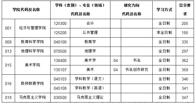 我校部分學(xué)科(類別)、專業(yè)(領(lǐng)域)單科分?jǐn)?shù)線執(zhí)行教育部《2020年全國(guó)碩士研究生招生考試考生進(jìn)入復(fù)試的初試成績(jī)基本要求》中A類考生單科分?jǐn)?shù)線,總分執(zhí)行如下表分?jǐn)?shù)線:
