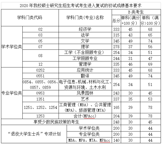 2020年全國碩士研究生統一入學考試考生進入復試的初試成績基本要求現已公布,為保證我校調劑和復試工作順利開展,現就有關事項公告如下: