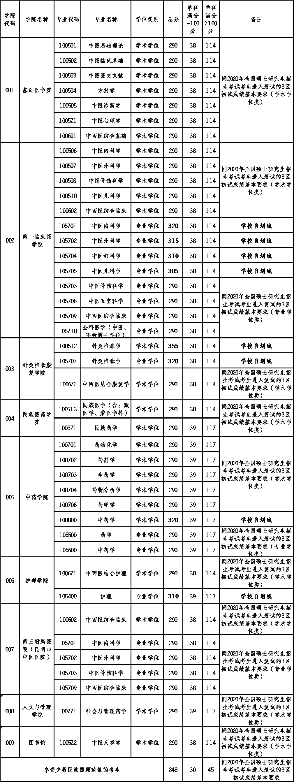 以上就是有關“2020考研分數(shù)線:云南中醫(yī)藥大學2020年全國碩士研究生招生考試考生進入復試初試成績基本要求及復試相關工作安排”的全部內(nèi)容了,進入復試的同學一定要好好準備,在國家線徘徊的同學抓緊準備調(diào)劑了!