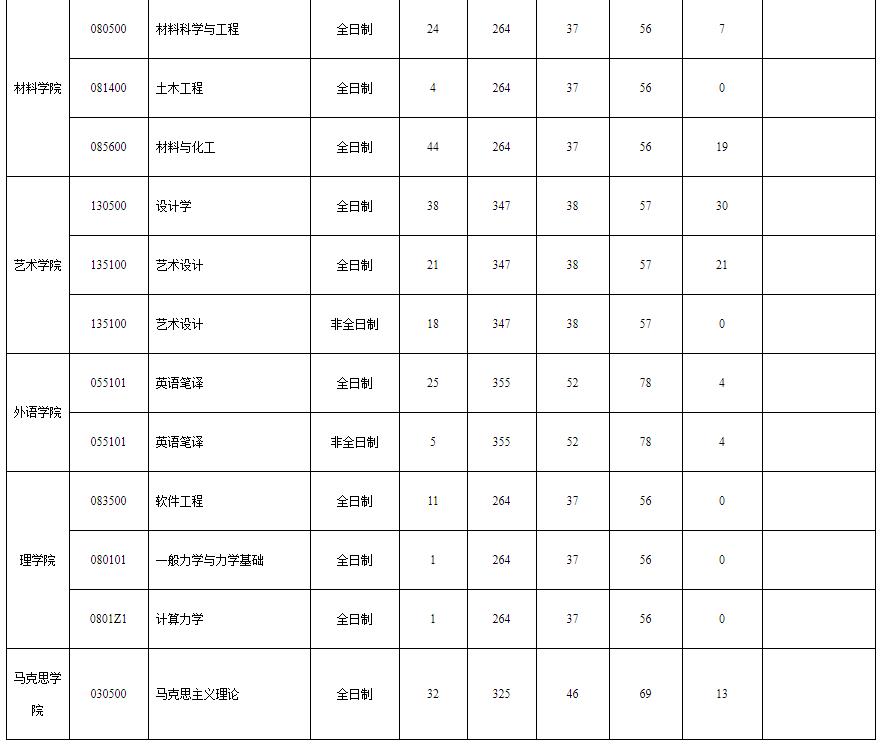 各專業(yè)復試分數線(含退役大學生士兵專項計劃)、擬招生計劃數及一志愿考生上線人數詳見下表,具體一志愿考生上線名單由各學院另行公布。