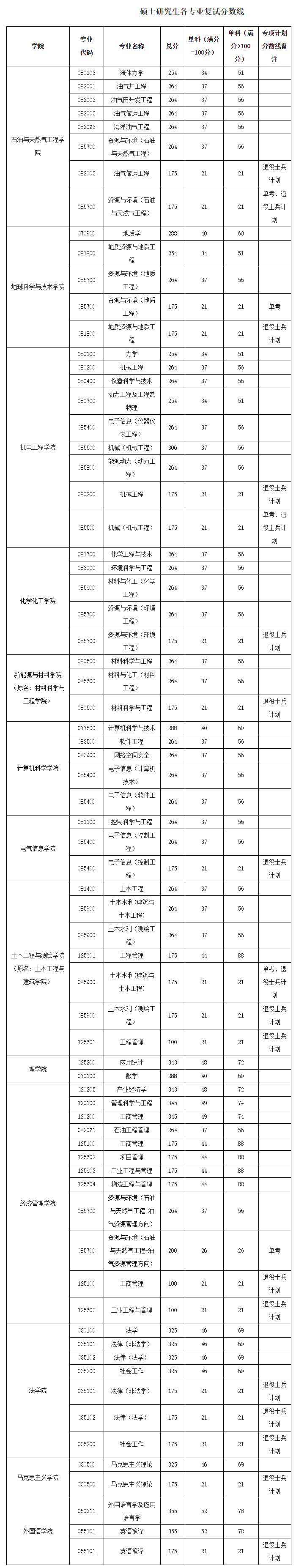 以上就是有關“2020考研分數線:西南石油大學2020年碩士研究生招生復試分數線”的全部內容了,進入復試的同學一定要好好準備,在國家線徘徊的同學抓緊準備調劑了!