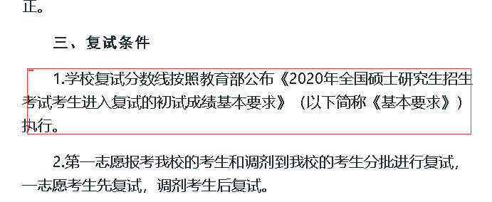 1.學校復試分數線按照教育部公布《2020年全國碩士研究生招生考試考生進入復試的初試成績基本要求》(以下簡稱《基本要求》)執行。