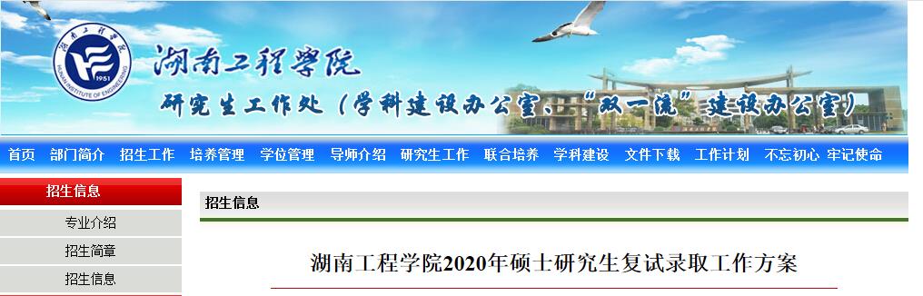 2、符合《湖南工程學(xué)院2020年碩士專業(yè)學(xué)位研究生招生簡章》的相關(guān)規(guī)定及要求(考生在復(fù)試前必須通過研究生處的資格審查)。