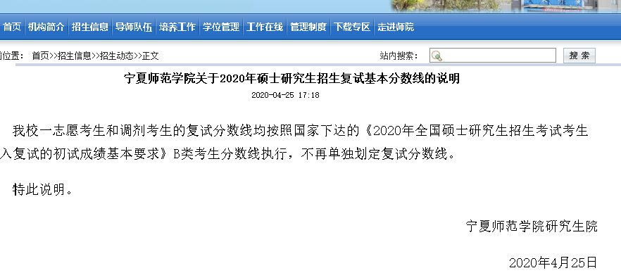 原標題:寧夏師范學院關于2020年碩士研究生招生復試基本分數線的說明