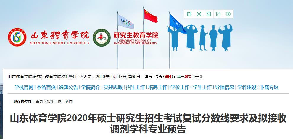以上就是有關“2020考研分數線:山東體育學院2020年碩士研究生招生考試復試分數線要求及擬接收調劑學科專業預告”的全部內容了,進入復試的同學一定要好好準備,在國家線徘徊的同學抓緊準備調劑了!