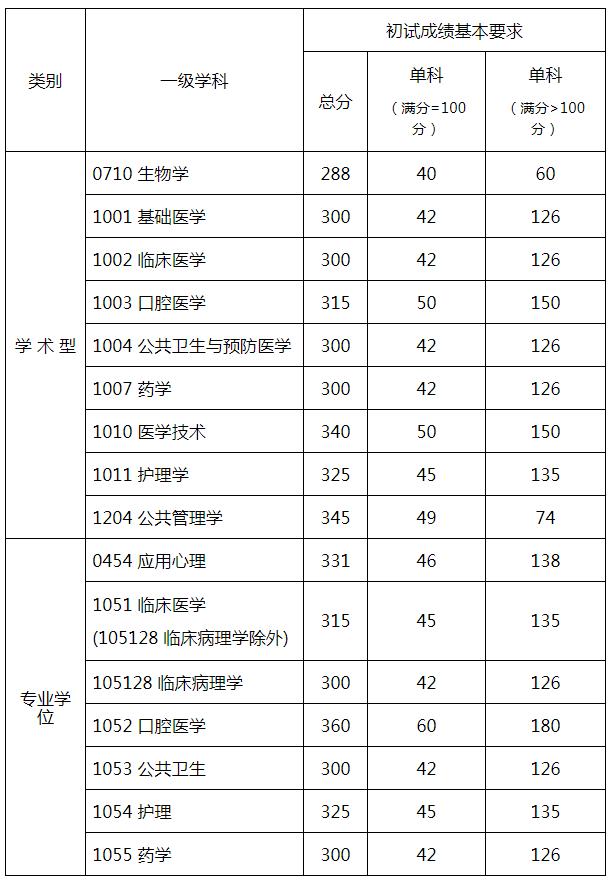 一、初試成績基本要求