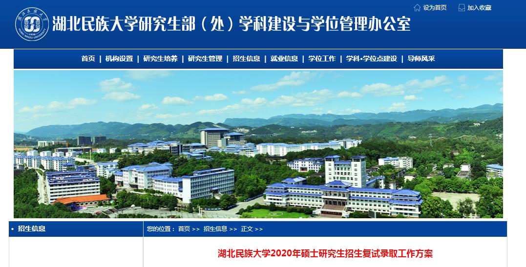 以上就是有關(guān)“2020考研分?jǐn)?shù)線:湖北民族大學(xué)2020年碩士研究生招生復(fù)試錄取工作方案”的全部內(nèi)容了,進(jìn)入復(fù)試的同學(xué)一定要好好準(zhǔn)備,在國家線徘徊的同學(xué)抓緊準(zhǔn)備調(diào)劑了!
