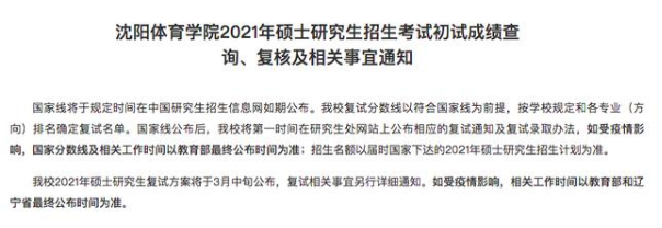 圖片來源: 沈陽體育學院復試相關通知截圖