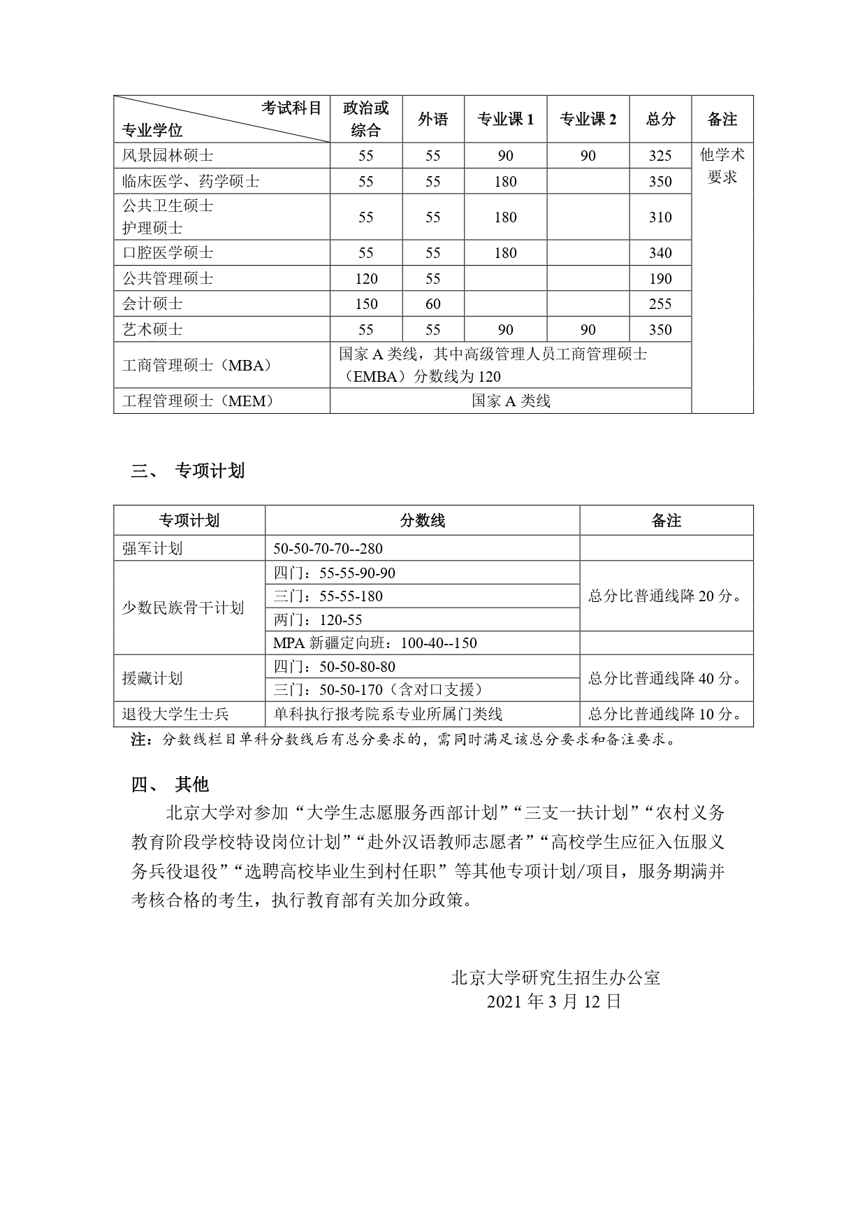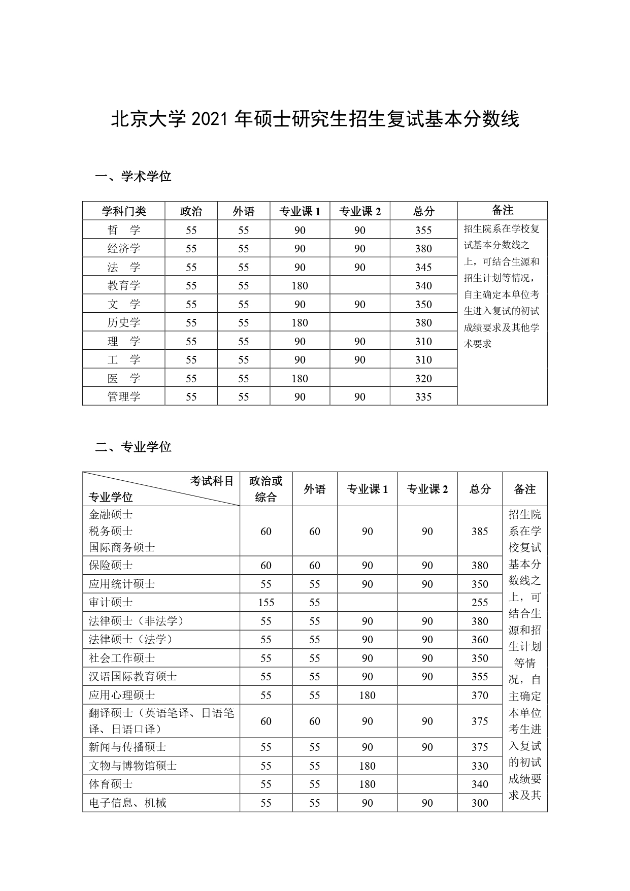 原文標題:北京大學2021年碩士研究生招生復試基本分數(shù)線
