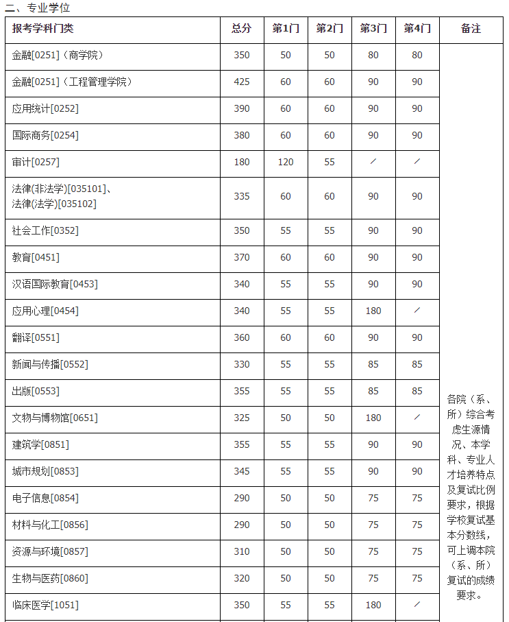 (6)招生院系可在學校公布的復試基本分數線基礎上,結合生源及招生計劃自主確定復試分數線,請考生關注各學院發布的復試方案。
