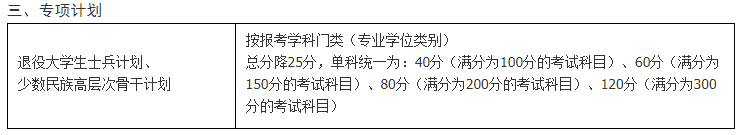 (2)高校學生應征入伍服現役退役,達到報考條件后,3年內參加全國碩士研究生招生考試的考生,初試總分加10分,同等條件下優先錄取。納入“退役大學生士兵”專項計劃招錄的,不再享受退役大學生士兵初試加分政策。