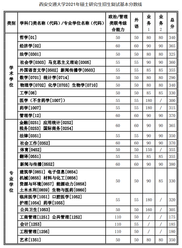 原文標題:西安交通大學2021年碩士研究生招生復試基本分數線公布