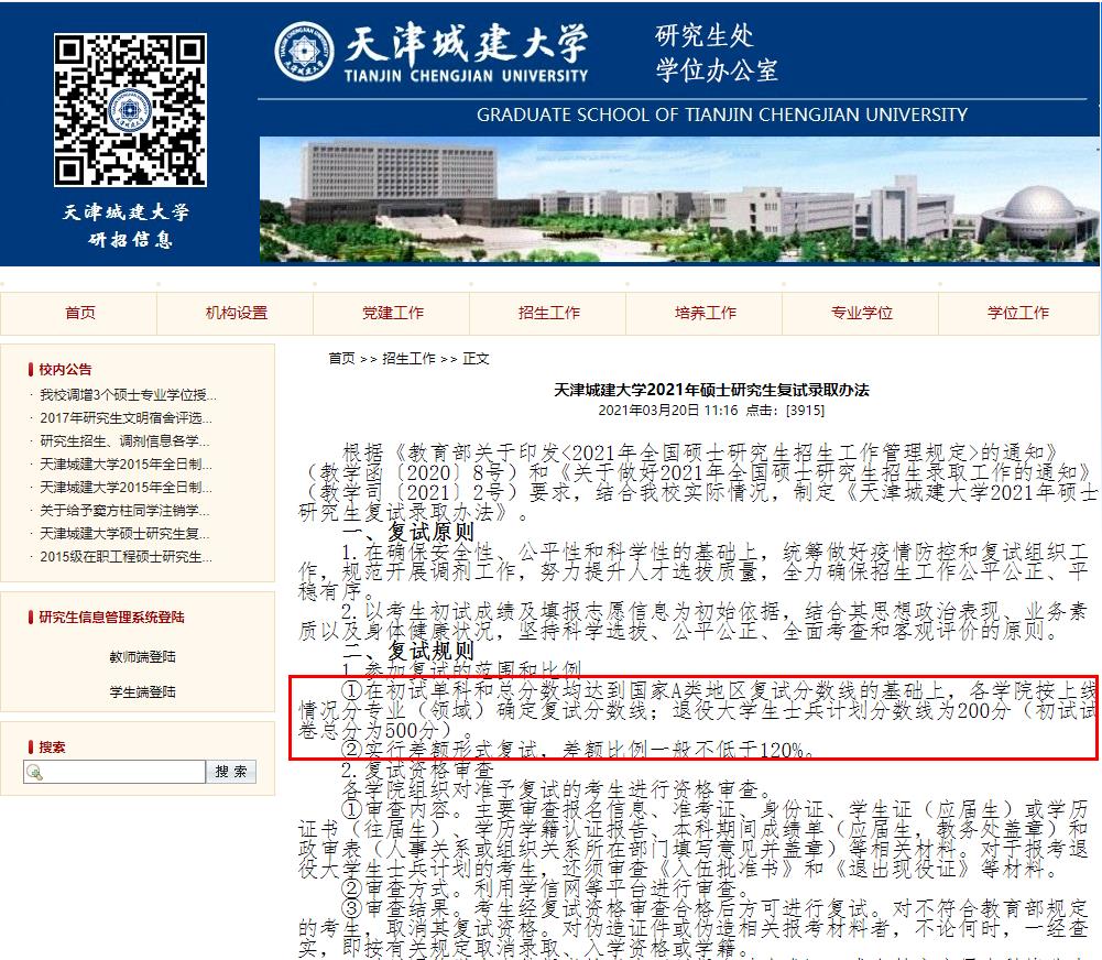 以上就是小編整理的“2021考研分?jǐn)?shù)線:天津城建大學(xué)復(fù)試分?jǐn)?shù)線_復(fù)試時(shí)間_國(guó)家線公布!"的全部?jī)?nèi)容。想了解更多考研相關(guān)信息,請(qǐng)持續(xù)關(guān)注本網(wǎng)站。