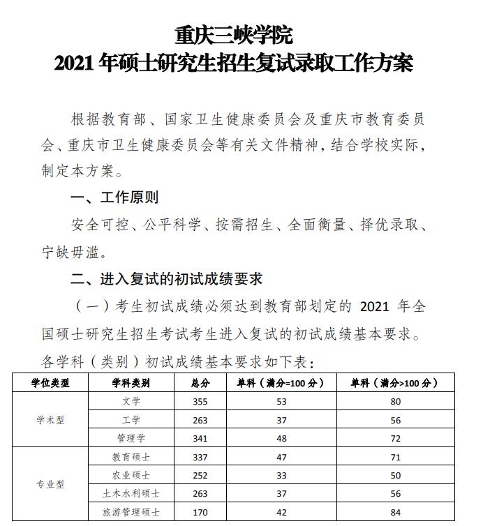 以上就是小編整理的“2021考研分數線:重慶三峽學院復試分數線_復試時間_國家線公布!"的全部內容。想了解更多考研相關信息,請持續關注本網站。