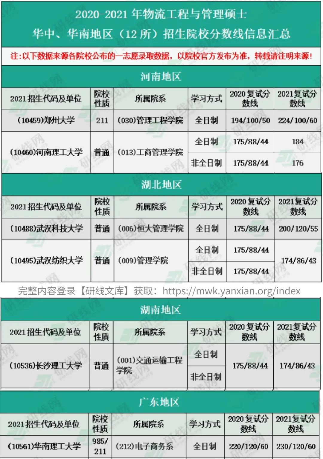 鐺鐺鐺~【研線數(shù)據(jù)行】2021年物流工程與管理專碩全國89所院校復(fù)試線匯總來啦!各地區(qū)各院校信息都有哦!還不快碼!