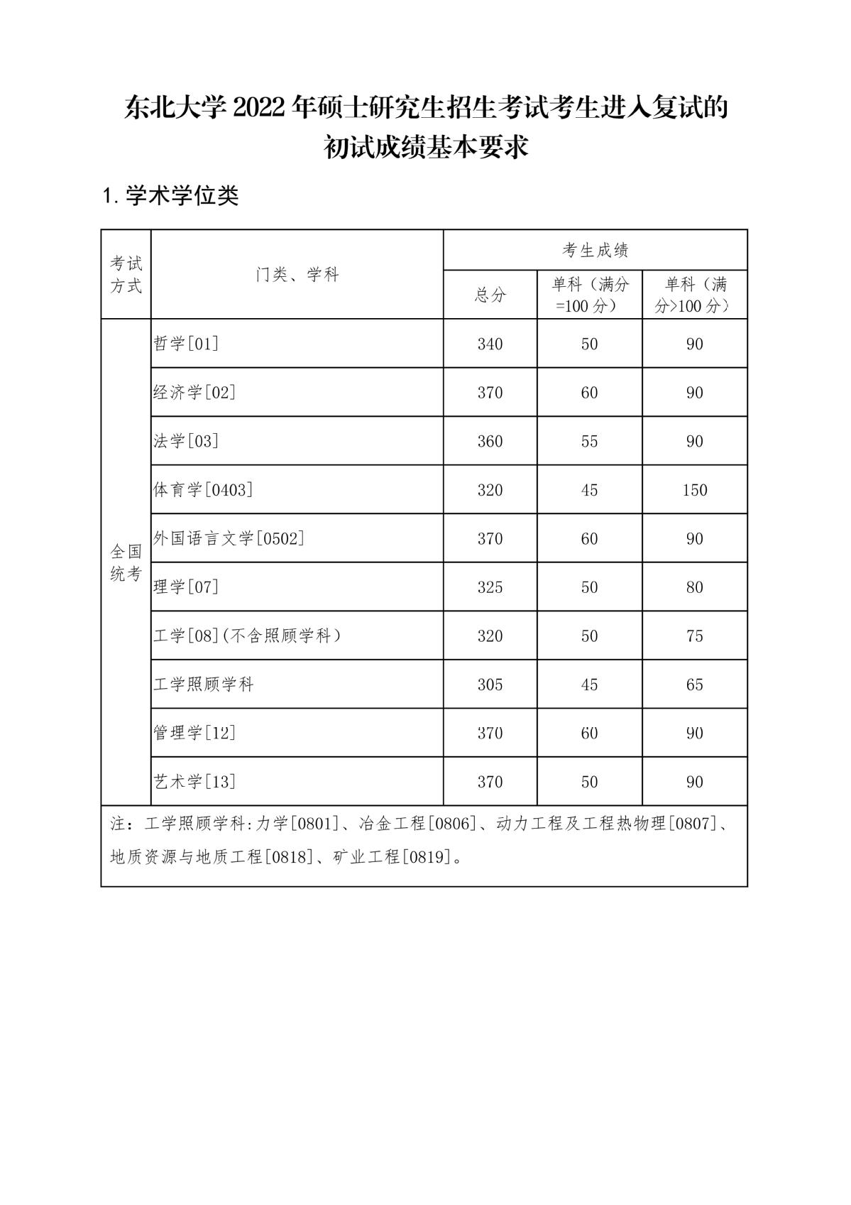 原文標(biāo)題:東北大學(xué)2022年碩士研究生招生考試考生進(jìn)入復(fù)試的初試成績(jī)基本要求