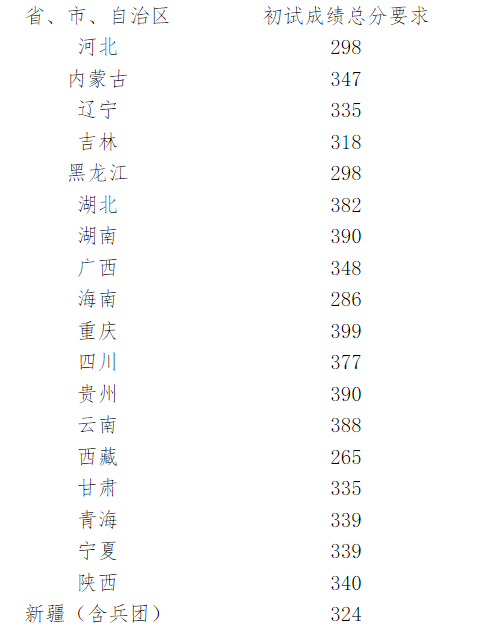 二、普通計(jì)劃考生進(jìn)入復(fù)試的初試成績(jī)要求