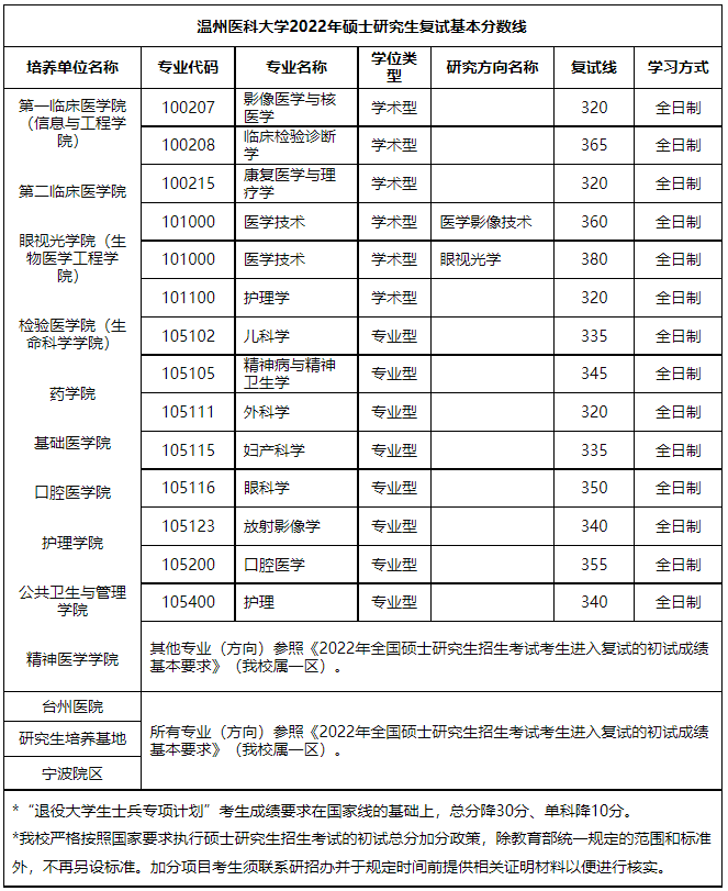 2022考研分?jǐn)?shù)線:溫州醫(yī)科大學(xué)2022年碩士研究生復(fù)試基本分?jǐn)?shù)線