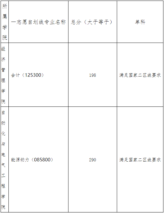 1. 一志愿報考我校并達到國家二區(B類考生)分數線的考生(自劃線的專業必須滿足我校公布的自定分數線);