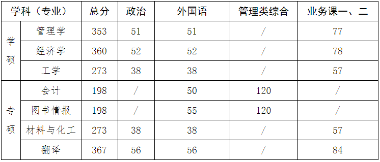 招收會計、圖情專碩的學院可參照學校復試成績要求,根據實際情況和學術要求適當調整可進入復試考生的成績要求,但不得低于學校復試標準,不得出臺歧視性或其他有違公平的規定。