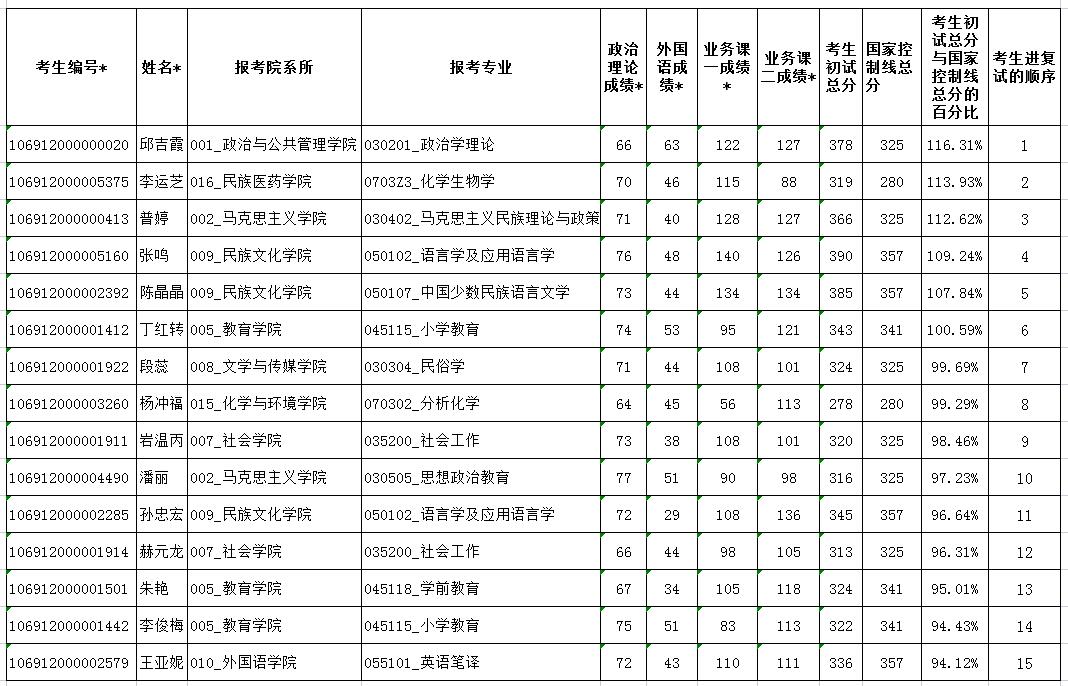 根據教育部《2022年全國碩士研究生招生工作管理規定》和《 云南省招生考試委員會關于做好云南省2022年碩士研究生招生錄取工作的通知》(云招考委[2022]1號)要求,經云南民族大學研究生招生工作領導小組會議研究確定,以下專業或專項計劃因上線人數較多,進入復試的初試成績(總分和單科成績)最低要求如下: