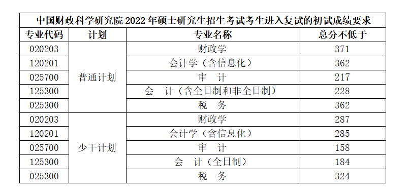 注:1.進(jìn)入復(fù)試的考生的初試總成績和單科成績均要求達(dá)到國家教育部規(guī)定的A類地區(qū)考生本專業(yè)復(fù)試分?jǐn)?shù)線的要求,且符合財(cái)科院招生章程中報(bào)考條件的考生可進(jìn)入復(fù)試。