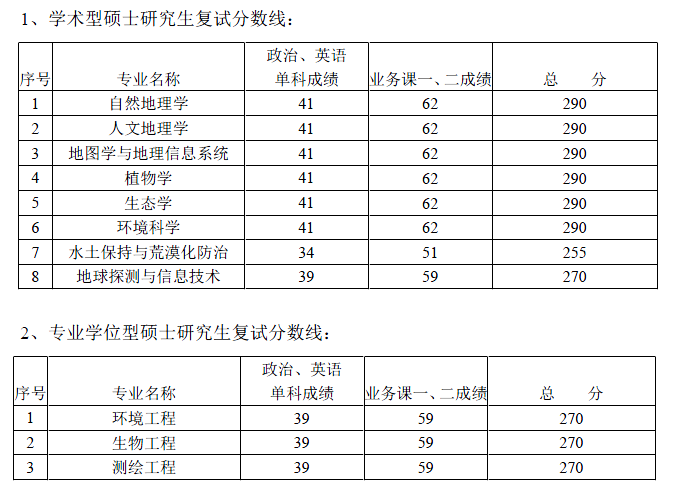 根據《2019年全國碩士研究生入學考試復試最低分數線》,結合上線生源數、招生計劃數等,確定我單位學術型和專業學位研究生的復試基本分數線如下: