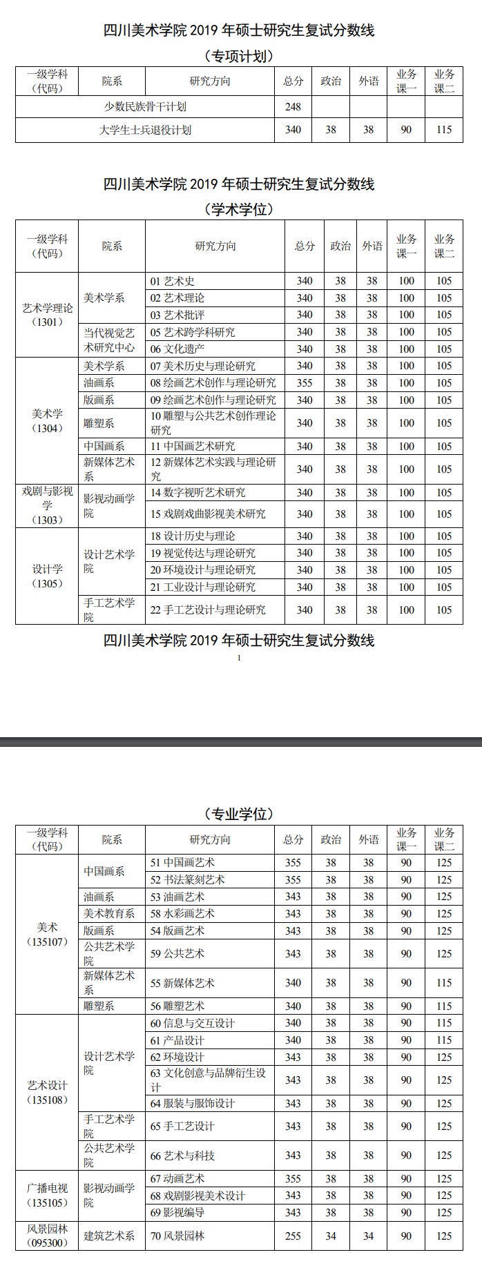 以上就是“四川美術學院2019考研復試分數線”的全部內容!得知復試分數線之后,作出適合自己的選擇。更多復試分數線內容盡在“復試分數線”欄目!研線網祝您考研成功!
