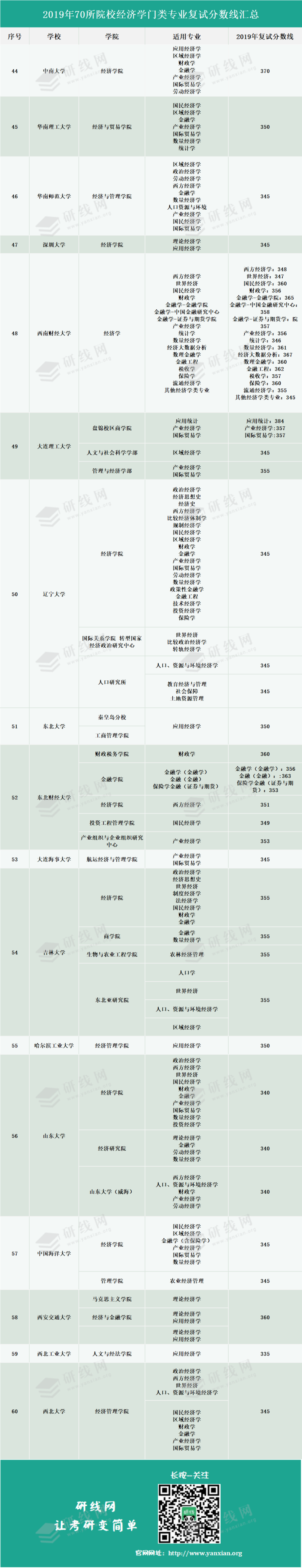 研線數(shù)據(jù)行提醒您:本次匯總涵蓋北京、天津、河北、上海、廣州、湖南、湖北等21個省市自治區(qū)直轄市的70所院校經(jīng)濟學(xué)門類相關(guān)專業(yè)復(fù)試分?jǐn)?shù)線!