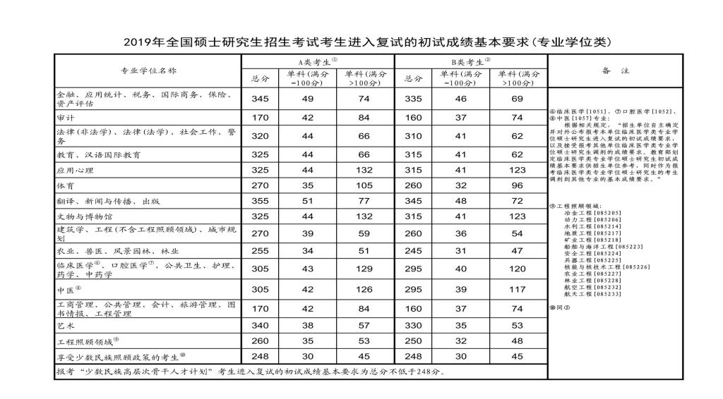 初試成績須符合報(bào)考專業(yè)對A類考生的全國初試成績基本要求(見附件1、2)。