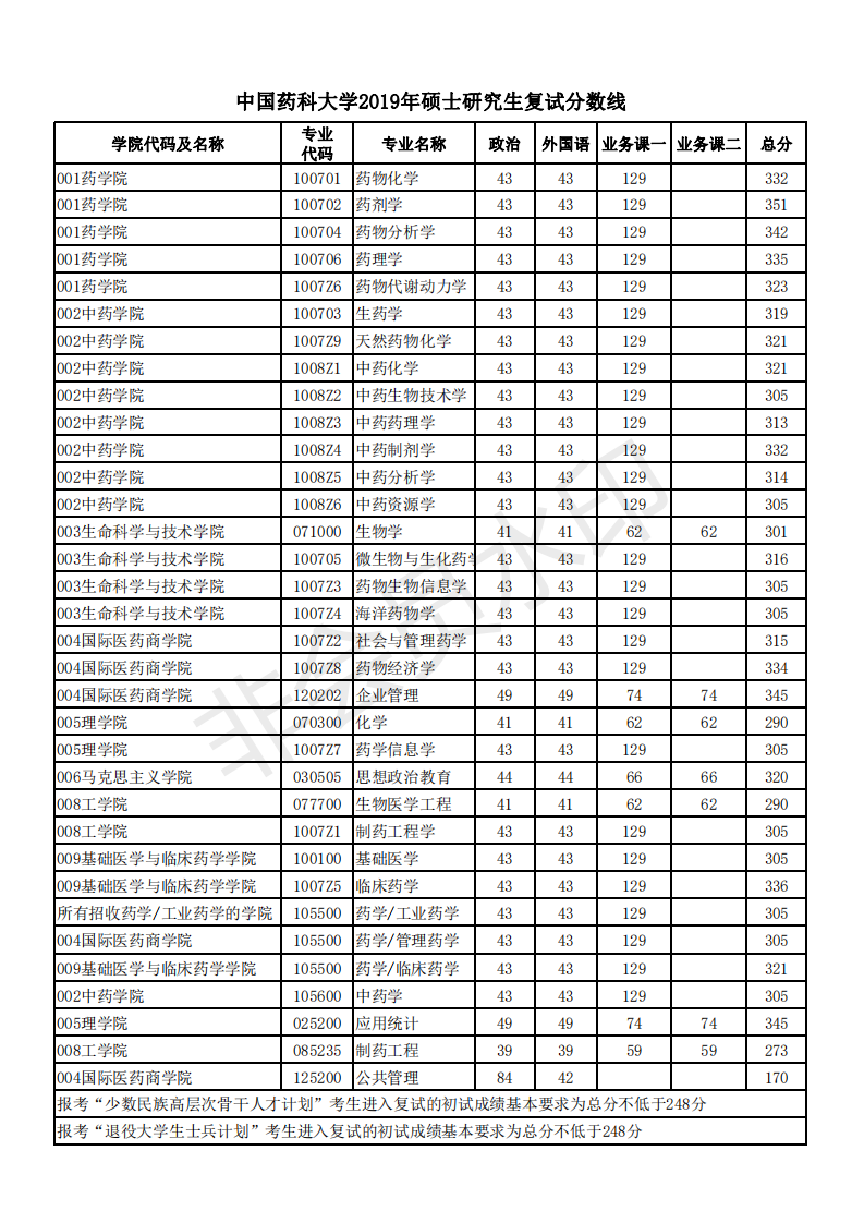以上就是為考生整理的“中國(guó)藥科大學(xué)2019年考研復(fù)試分?jǐn)?shù)線”的相關(guān)內(nèi)容!更多復(fù)試分?jǐn)?shù)線內(nèi)容盡在“復(fù)試分?jǐn)?shù)線”欄目!研線網(wǎng)祝您考研成功!