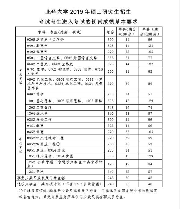 以上就是為考生整理的“北華大學2019年碩士研究生復試分數線”的相關內容!更多復試分數線內容盡在“復試分數線”欄目!研線網祝您考研成功!