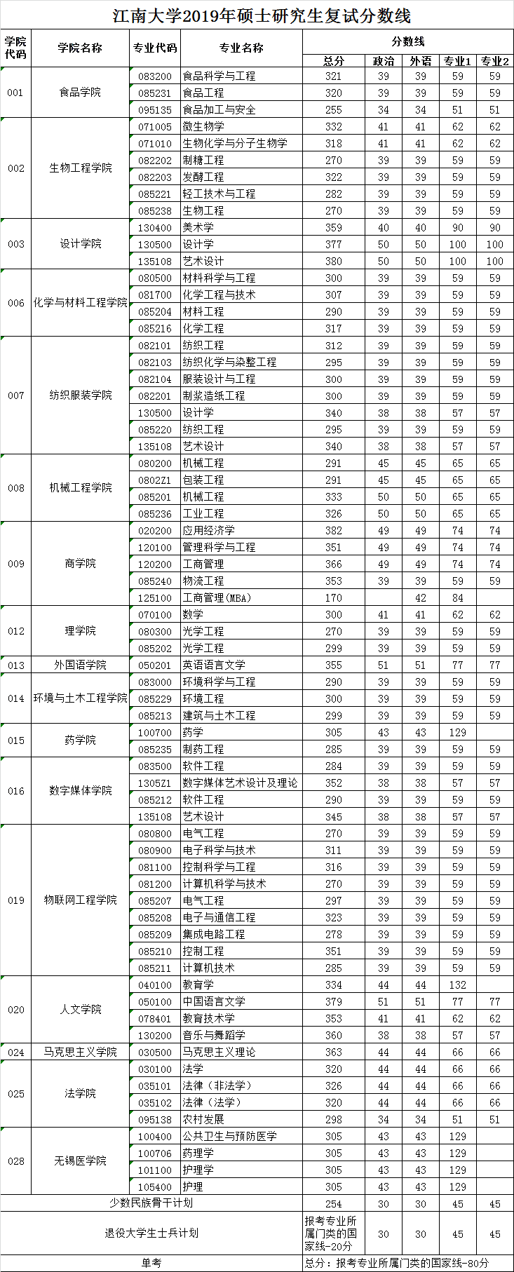 以上就是為考生整理的“江南大學2019考研復試分數線”的相關內容!更多復試分數線內容盡在“復試分數線”欄目!研線網祝您考研成功!