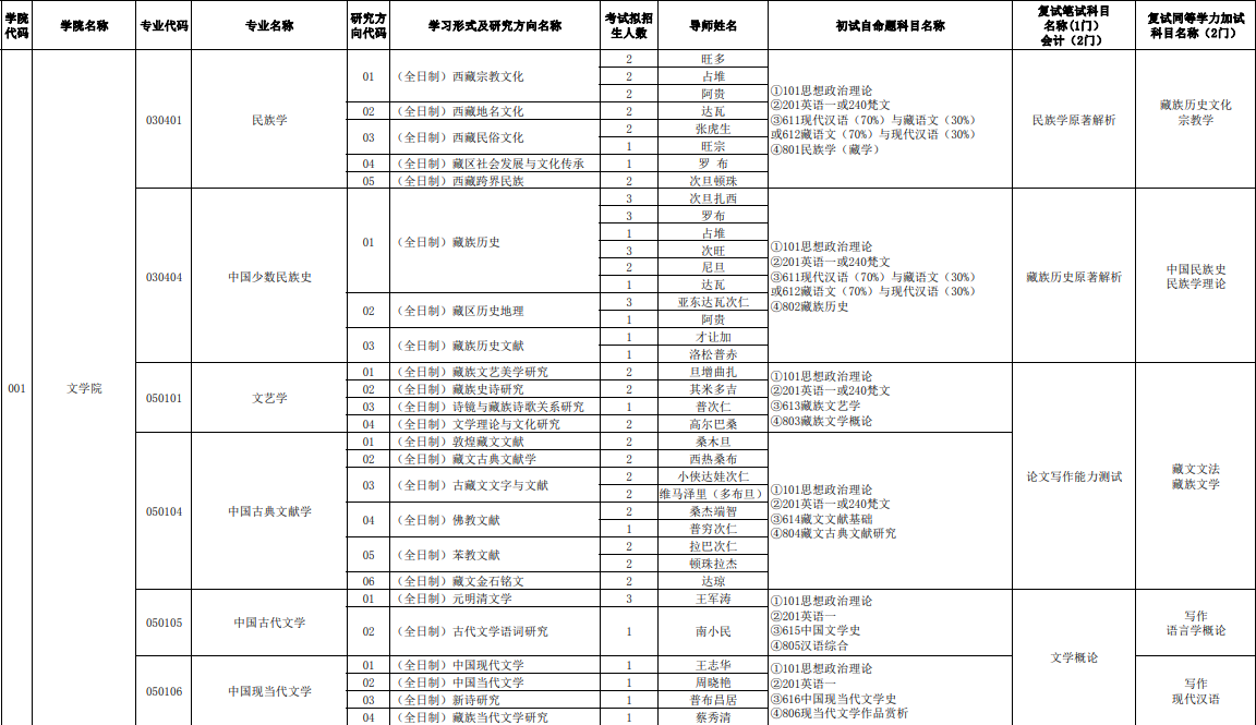 2020考研復(fù)試科目|西藏大學(xué)2020年碩士研究生復(fù)試科目如下: