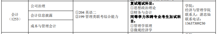 復試筆試科目: ①思想政治理論 ②財務與會計