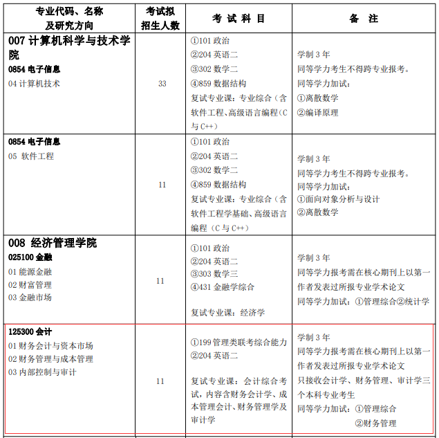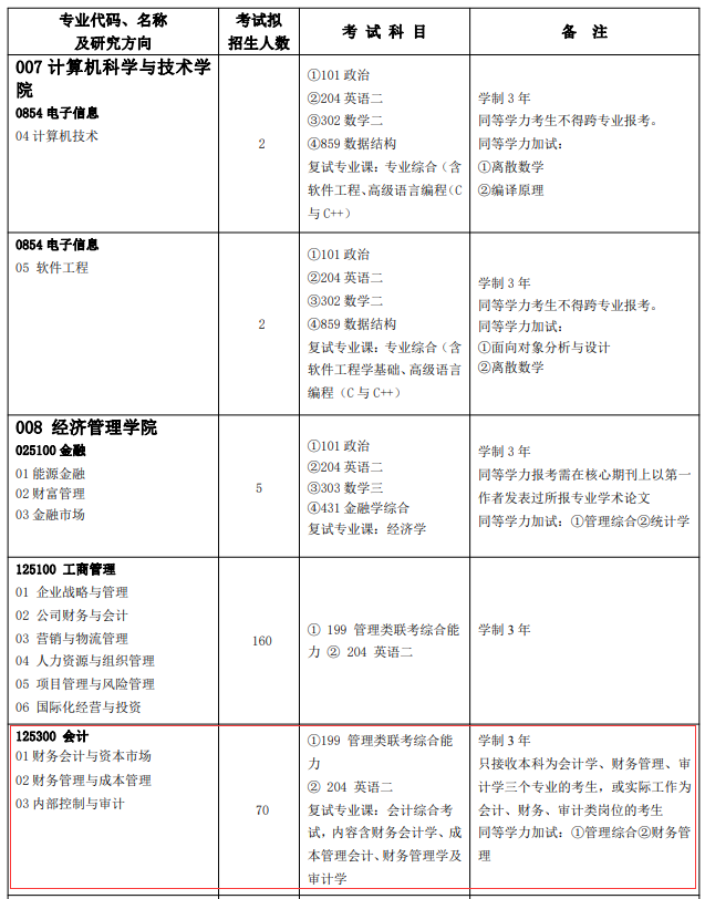 只接收本科為會計學、財務管理、審計學三個專業的考生,或實際工作為會計、財務、審計類崗位的考生