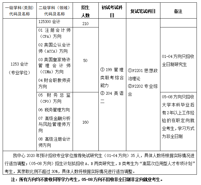 05-08方向只招收大學本科畢業后有2年以上工作經驗的在職定向就業考生,學習方式為非全日制