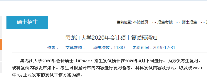 以上就是“黑龍江大學2020年會計碩士復試預通知”的全部內容。祝您考研成功!