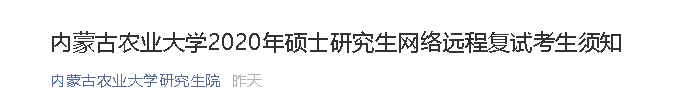以上就是“2020考研復(fù)試:內(nèi)蒙古農(nóng)業(yè)大學(xué)2020年碩士研究生網(wǎng)絡(luò)遠(yuǎn)程復(fù)試考生須知”的全部?jī)?nèi)容。祝您考研成功!