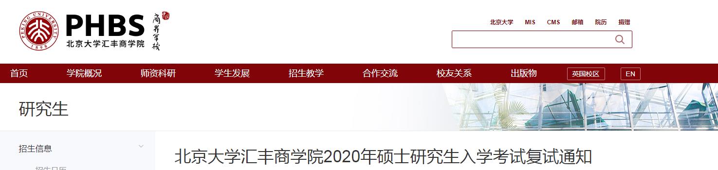 2020考研復試:北京大學匯豐商學院2020年碩士研究生入學考試復試通知