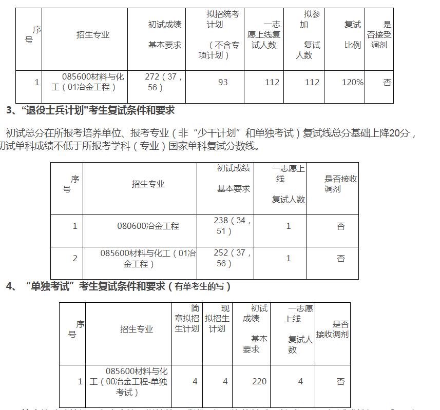 2、以同等學(xué)力身份參加復(fù)試的考生,在復(fù)試中須加試至少兩門與報(bào)考專業(yè)相關(guān)的本科主干課程。加試科目詳見《北京科技大學(xué)2020年碩士學(xué)位研究生招生章程》。加試方式為筆試,加試時(shí)間和加試方式學(xué)院另行通知考生本人。加試每個(gè)科目滿分為100分,加試成績不計(jì)入復(fù)試總成績,但不合格者(低于滿分的60%)不予錄取。