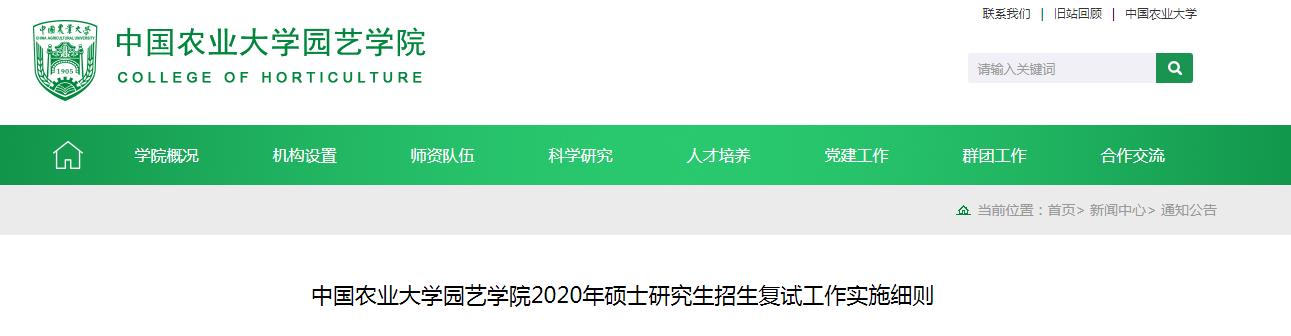 根據研究生院《中國農業大學2020 年碩士研究生招生復試錄取工作辦法》(研生【2020】3號)文件精神,結合我院實際情況,特制訂2020年碩士研究生招生復試工作實施細則。