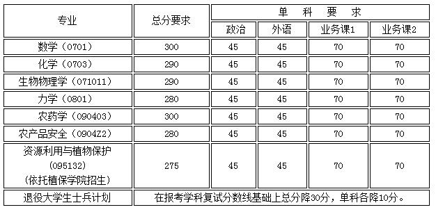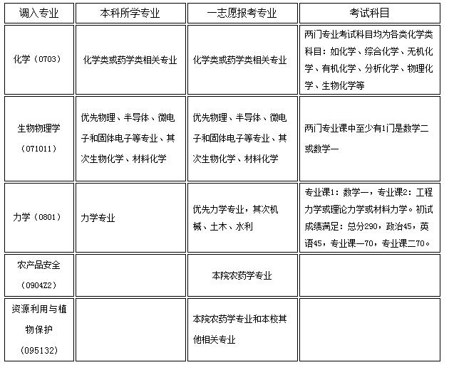 初試成績符合第一志愿報考專業的我校初試成績基本要求和全國初試成績基本要求,其他專業及考試科目方面的要求如下