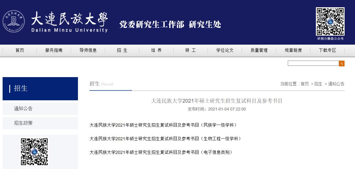 原文標題:大連民族大學2021年碩士研究生招生復試科目及參考書目