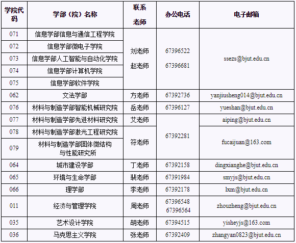北京工業(yè)大學(xué)研究生招生各學(xué)部(院)聯(lián)系方式: