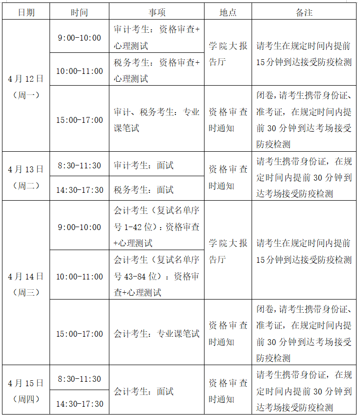 在抓好疫情防控,確保師生健康安全的前提下,統籌考慮疫情形勢、學院實際情況及復試工作要求,經綜合研判,學院暫定2021年碩士研究生招生復試采取現場復試的方式。根據國家復試工作總體安排,結合我院實際及疫情防控要求,本次碩士研究生復試工作擬分批次進行,安排如下: