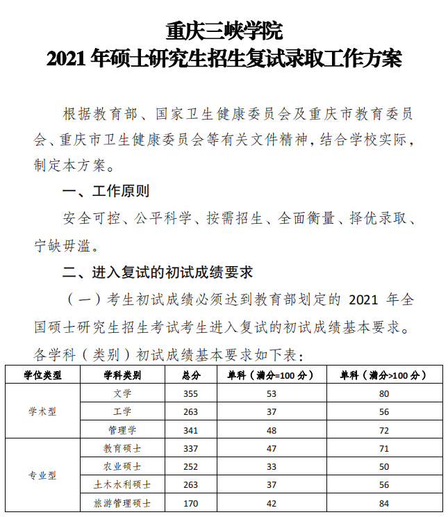 原文標題:重慶三峽學院2021年碩士研究生招生復試錄取工作方案