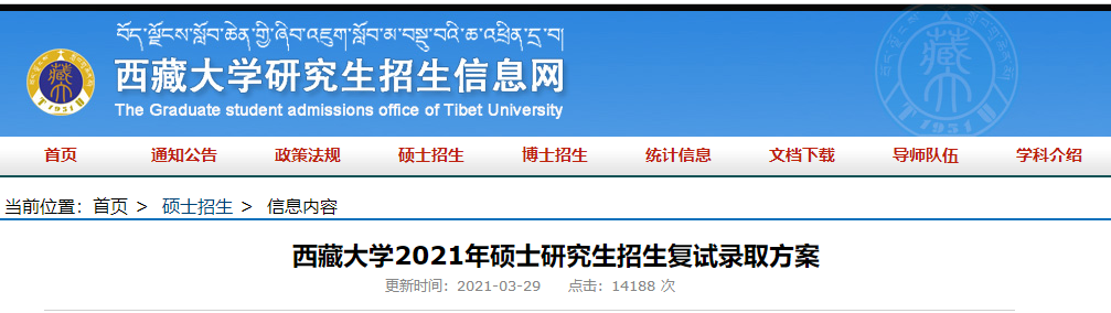 附件:西藏大學2021年碩士研究生招生復試錄取方案