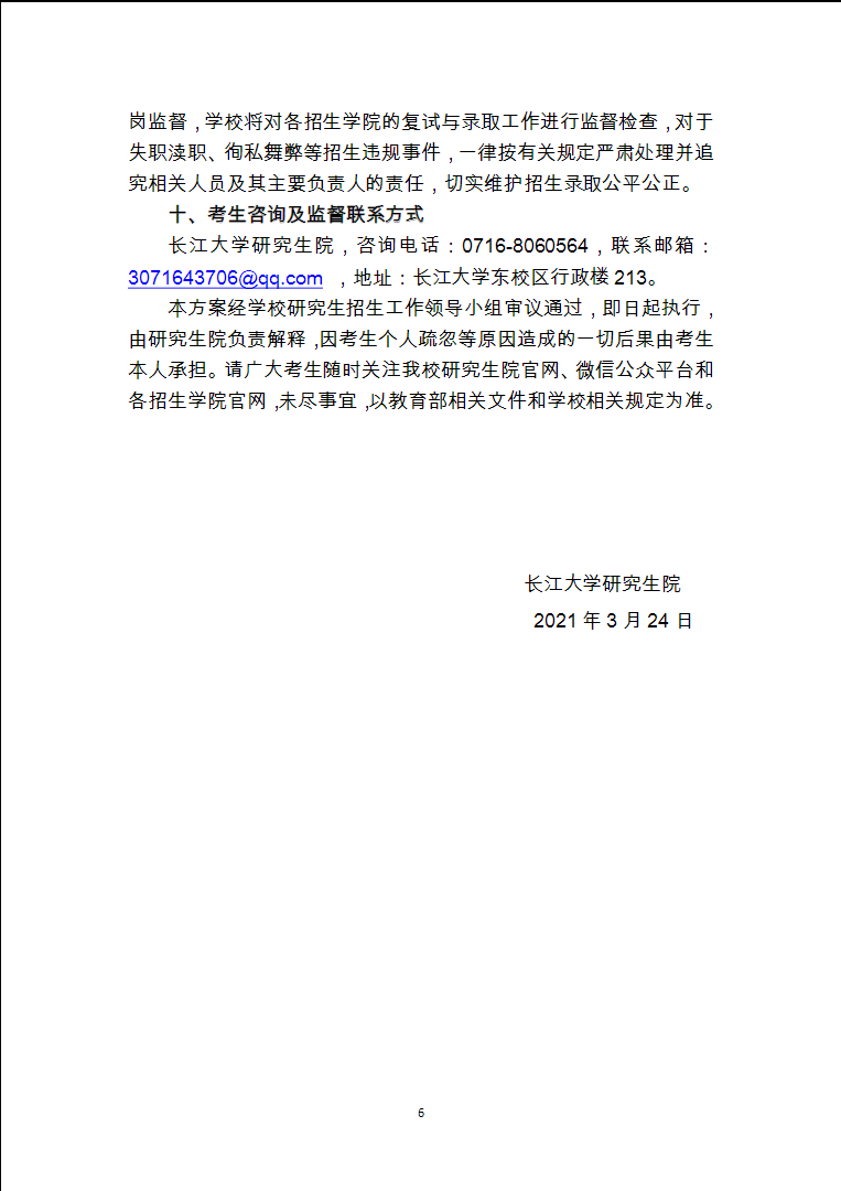 2021考研復試安排_復試時間_復試方式:長江大學2021年碩士研究生招生復試錄取工作方案
