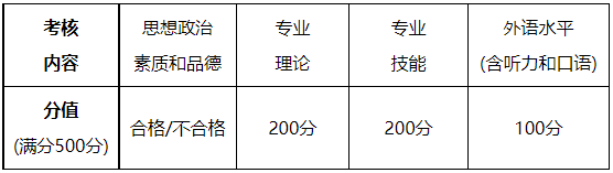 復(fù)試小組應(yīng)集體研究、設(shè)置題目、形成題庫(kù),需保證復(fù)試考生一人一題、隨機(jī)抽選。試題中需包含專業(yè)理論、專業(yè)技能和外語(yǔ)水平等相關(guān)考核內(nèi)容。具體內(nèi)容由各復(fù)試小組在保證公平性、科學(xué)性基礎(chǔ)上,依據(jù)專業(yè)特點(diǎn)和實(shí)際情況制定,復(fù)試考核內(nèi)容分值如下表所示: